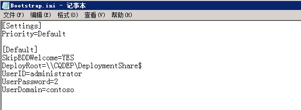 Bootstarp文件中存放的内容是客户端机器访问Deployment Share共享文件夹时所需要提供的凭据,如果Bootstrap内不写任何内容,客户端在部署时,需要输入相应的访问凭据,来通过验证,最终获取Deployment Share
