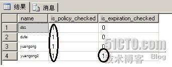 Is_policy_checked中的值为1表示该列上使用强制策略,is_expiration_checked的值为1表示使用了强迫口令过期