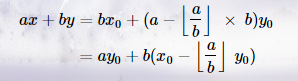 所以 原式 可化为 ax + by = gcd(a,b) -> ax + by = gcd(b,a%b) -> bx0 + (a%b)y0 = gcd(b,a%b)