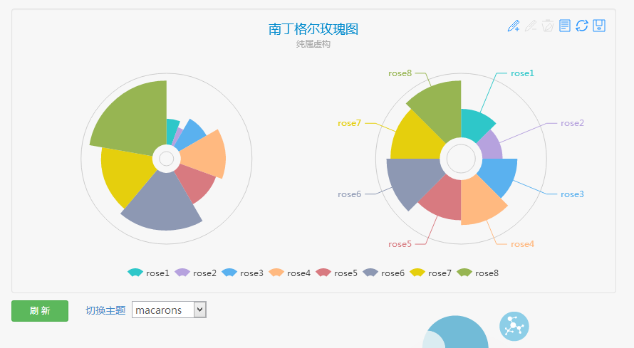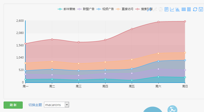 刚开始使用echarts只是为了解决视觉疲劳的问题,目前刚开始弄还有一些细节问题没有搞定,比如tooltip时单位如何设置、线、柱、堆叠图如何设置圆角,最起码官方的demo都是圆角的,还有待于继续学习和研究。如果有遇到这几个问题并有解决方案的朋友欢迎发邮件指点我下,谢谢。