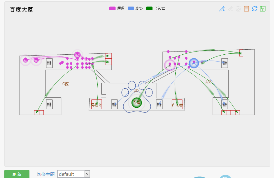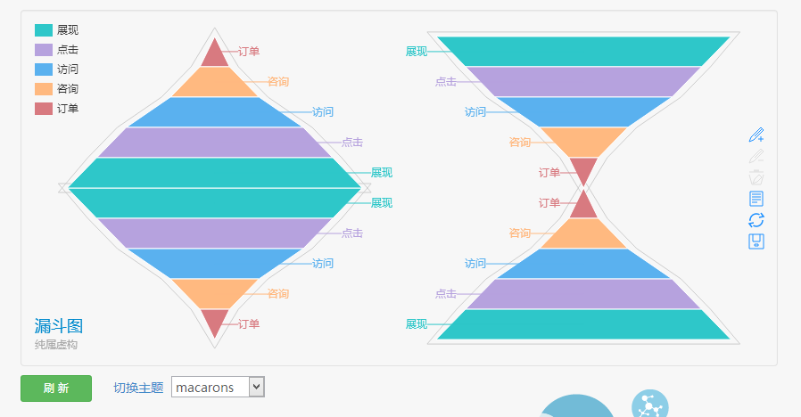 2、支持工具栏。 这个可以说是用了这么多前端插件最意外的一个功能,工具栏中支持【查看数据】、【折现图】、【堆叠】、【平铺】、【还原】、【保存为图片】,几种格式互相切换起来确实方便不少,尤其是事业单位的员工用户,闲的没事干可以点来点去。