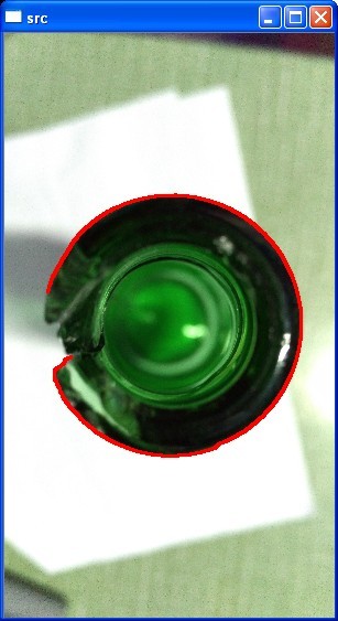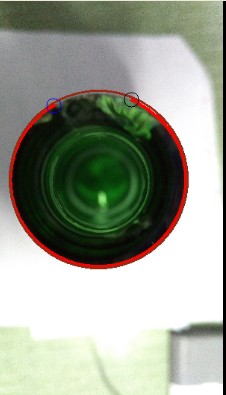 比如这幅图片,由于瓶口是有缺陷的,造成找到的最大外轮廓不闭合。那么该如何判断这个轮廓是否是圆了。
