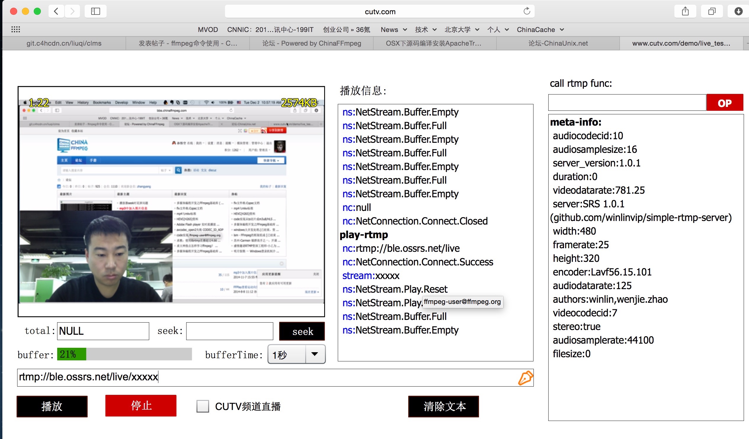 - ./ffmpeg -f avfoundation -i "1" -vcodec libx264 -preset ultrafast -acodec libfaac -f flv rtmp://ble.ossrs.net/live/xxxx