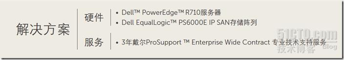 经过严谨的论证、周密的调研、全面的考察,2010年4月初, 渡口网络最终决定采用“De l lPowerEdge™ R710服务器+ Dell EqualLogic™PS6000E IP SAN存储+ 戴尔ProSuppor t ™Enterprise Wide Contract服务”一体化方案搭建《天之痕Onl ine》的运营平台, 其中包括2 1 9台戴尔P owe r E d g e™R 7 1 0 服务器与1 套戴尔EqualLogic™ PS6000E IPSAN存储阵列。