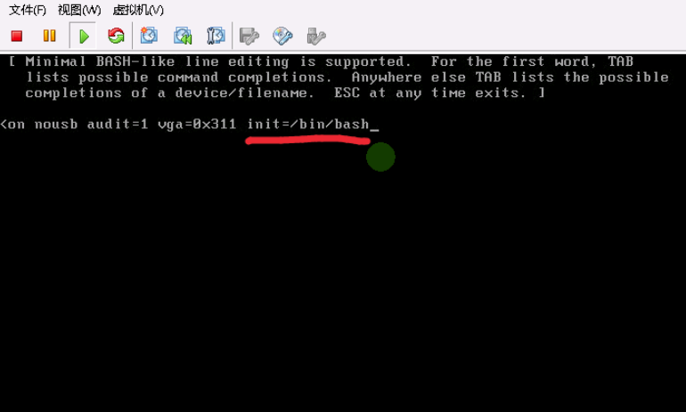 将以下条目附加到该行的末尾:init=/bin/bash 如下图。键入完毕回车。