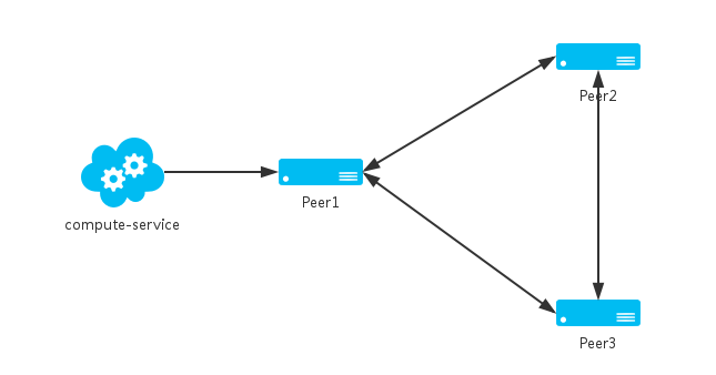 假设我们有3个注册中心,我们将peer1、peer2、peer3各自都将serviceUrl指向另外两个节点。换言之,peer1、peer2、peer3是两两互相注册的。启动三个服务注册中心,并将compute-service的serviceUrl指向peer1并启动,可以获得如下图所示的集群效果。