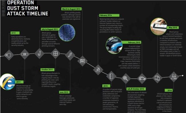 Cylance研究员揭露幕后之手从2015年开始集中精力于日本组织机构,他们的黑客攻陷了日本电力、石油和天然气,交通运输,财政和建筑行业等组织机构的网络。