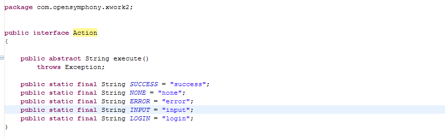 如上图所示是Action的源码,我想聪明的读者已经可以想到我们在编程弄应该尽量使用源码中所示的这些预置结果名称