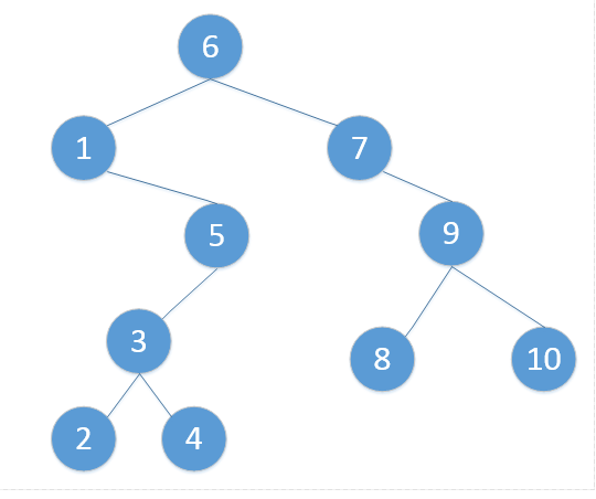 插入1,5,4,3,2,6之后,得到的二叉查找树如下: