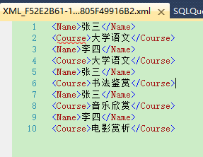 由此可以看出 FOR XML PATH 可以将查询结果根据行输出成XML格式。