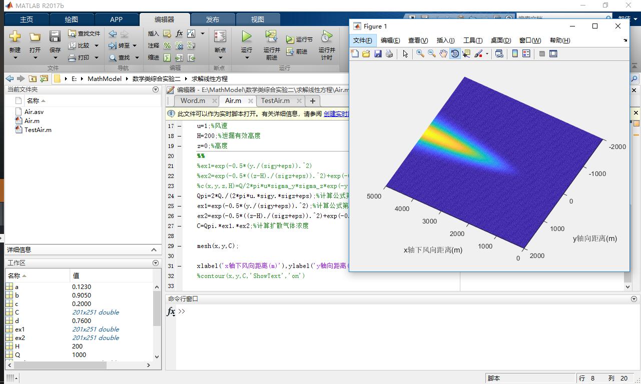 本文介绍了高斯羽烟模型在计算气体扩散浓度中的应用,重点讨论了扩散系数,并提供了Matlab仿真代码。通过公式阐述了污染物浓度、源强、风速等参数之间的关系,适合数学建模爱好者参考。
