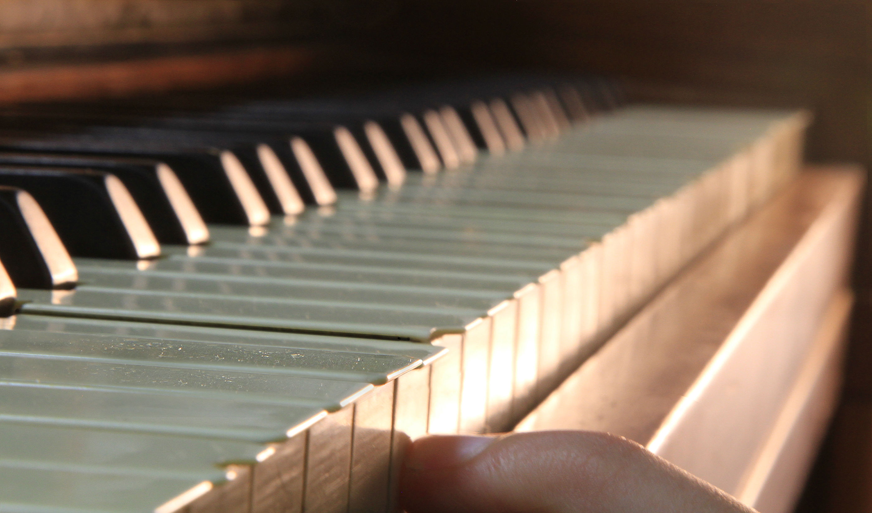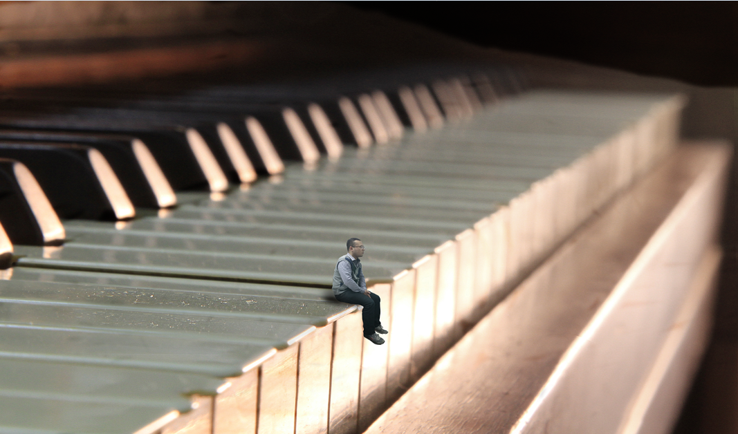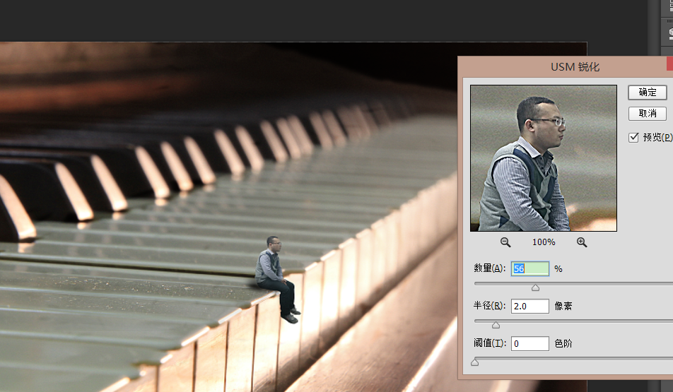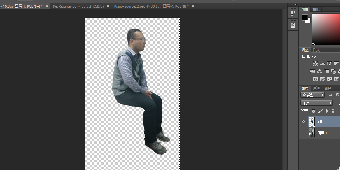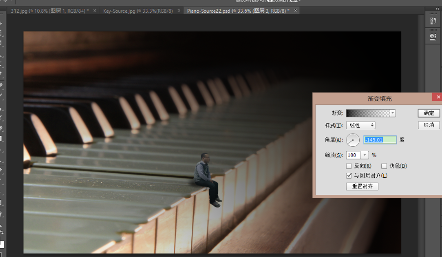 画笔把应该给琴键遮挡的部位擦去,现在人物是坐在琴键上的。