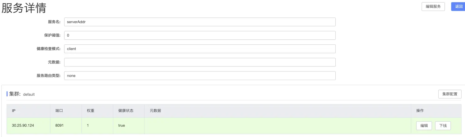 运行成功后可在 Nacos 控制台看到 服务名 =serverAddr 服务注册列表: