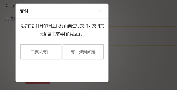 要做的效果其实很简单,就是在做支付的时候,出现一个弹出层,然后跳到一张新页面,类似于下面两张图片的效果: