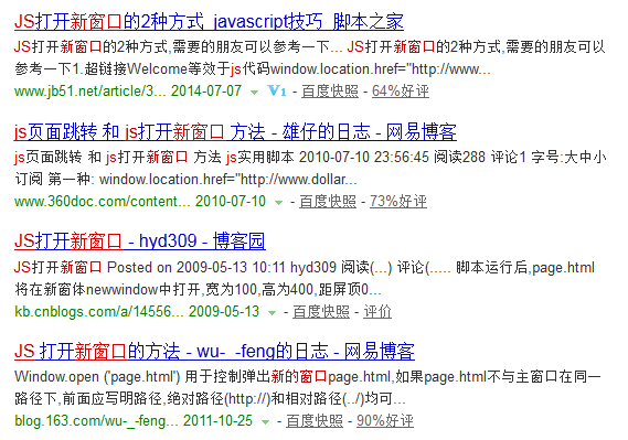 这是我最先想到的,然后自己YY了一下,给location加了个target属性,以为这样就能弹出新页面了,实在太无知啦,毫无效果,还是在当前页面跳转。这里就暴露了我解决新问题,总是喜欢从自己用过的技术着手,总是想把那些技术嫁接过来,拼上去,有点碰运气的感觉。发现失败了,就立刻打开搜索引擎,输入最直接的关键字。
