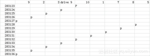 【判断RAID-5成员盘盘序】按照1024扇区分割,使一个记录为一个条带的大小,如图5所示。并且9块盘跳到同一记录283123。