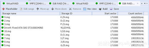 点击Build进行重组。组好后,由于数据从1024*8=8192个扇区开始,若专业恢复工具没有跳转到此扇区的功能,那么刚组好的RAID必须和一个文件再进行一次Build重组操作。RAID的起始扇区(Start sectors)选择8192,这个文件可以任意选择起始扇区和大小大小(Count sectors),如图8和图9所示,图10是组好的RAID-5。