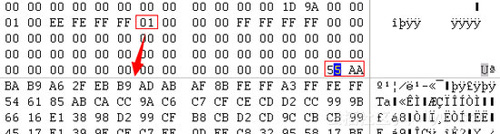 按图1方式继续往下找,分别在9号盘和8号盘找到了“55 AA”的标志。9号盘查询结果如图3所示。这是一个正常的MBR分区,其0x01C6处数值代表指向的下一个扇区为GPT的头部。