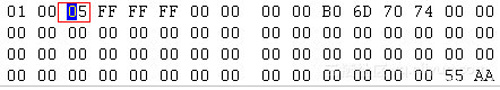 查找结果如图2所示,0x01C2H处表示该分区的类型,这里显示“05”,代表这是一个扩展分区。因此从0扇区看这是一个不正常的MBR分区结构。