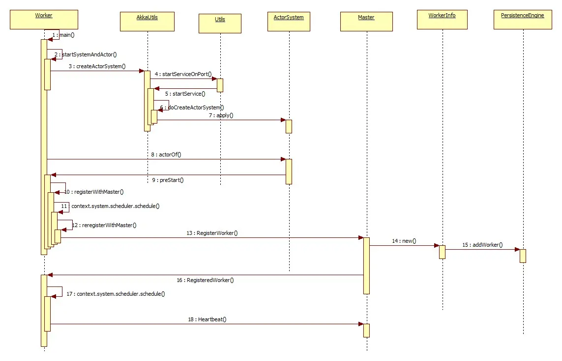 actor ! RegisterWorker(workerId, host, port, cores, memory, webUi.boundPort, publicAddress)