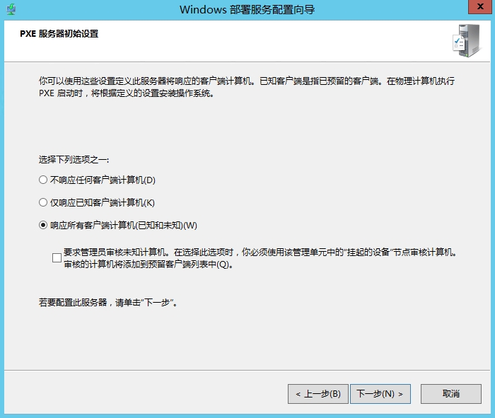 2.5、选择"响应所有客户端计算机(已知和未知)",单击下一步继续: