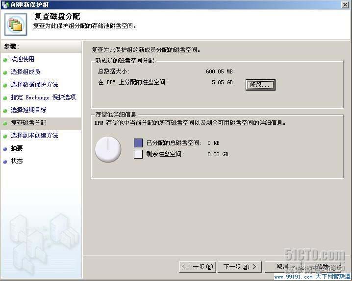8. 在“复查磁盘分配”窗口中根据实际情况分配用来存储保护数据的空间,然后单击“下一步”,如图9所示: