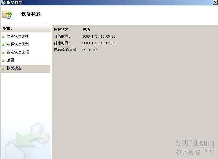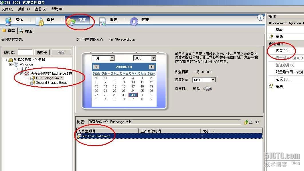 13. 至此,DPM 2007已经开始为Exchange Server进行数据保护了,同时经过刚才的配置之后已经进行了一次数据完全备份。也就是备份了前面bob用户发给alice的那封信。