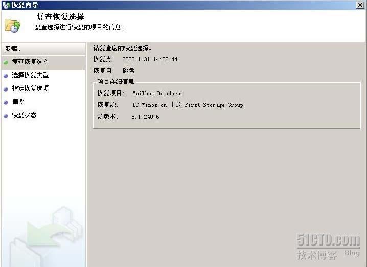 如图17,不过似乎不支持恢复单个文件夹中单封邮件。OK,在这里我就不演示如何恢复单个邮箱了。) 5. 在弹出的“复查恢复选择”窗口中单击“下一步”,如图18所示:
