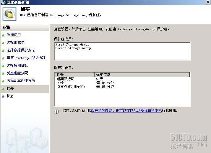 “摘要”窗口中复查设置信息,无误后单击“创建组”开始创建保护组,如图11: