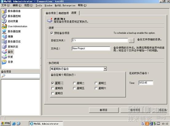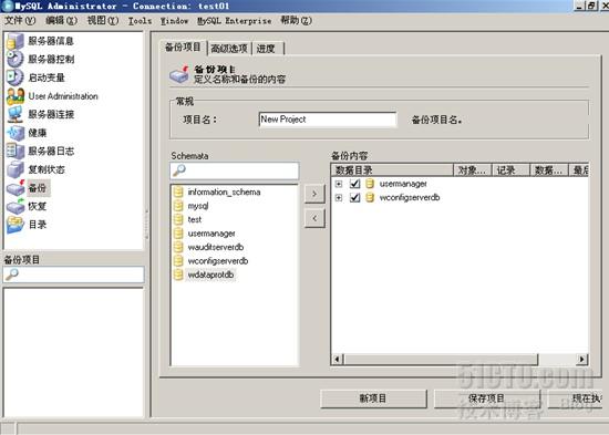 选择 – 备份 – 新项目 , 选择要备份的数据库