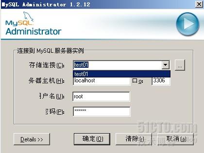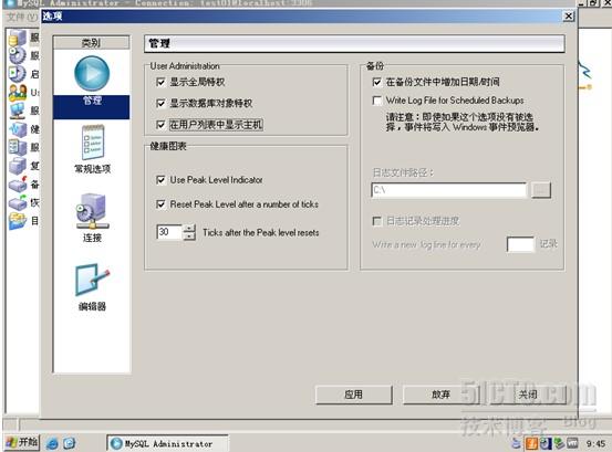 开始--所有程序--MYSQL -- MySQLAdministrator.exe,打开界面,服务器主机localhost,下面填写数据库账户密码,登录