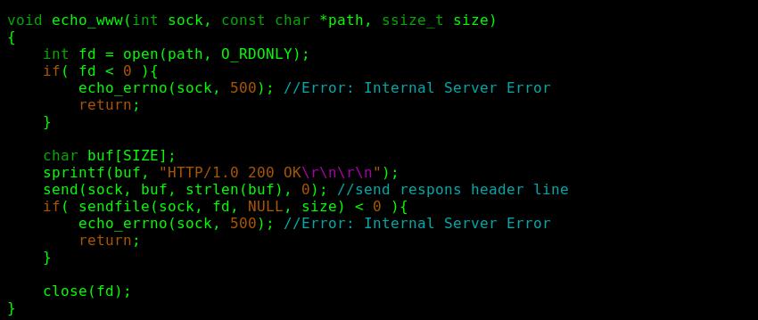 如果请求的资源存在并且是非cgi程序,echowww()将该资源发送给请求方。
