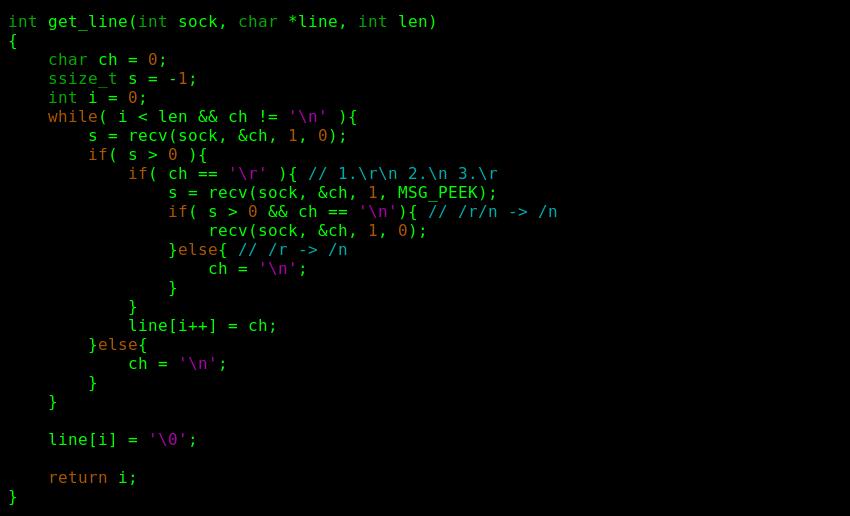 get_line()函数读取sock中的一行数据(最大长度len)到line中。