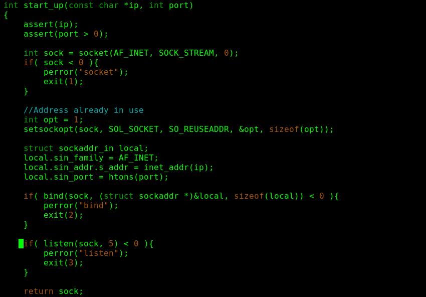 start_up()函数创建一个监听套接字,检测是否有新的请求。