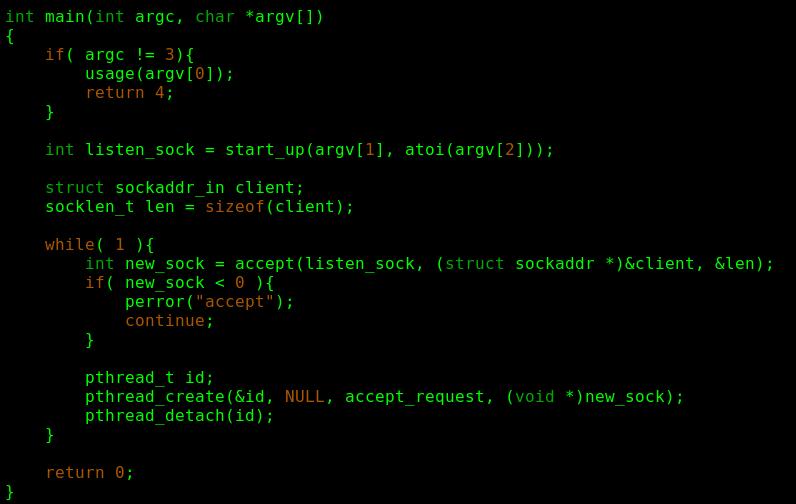 当接收到一个新的请求时,派生一个新的线程执行accept_request()函数去处理。