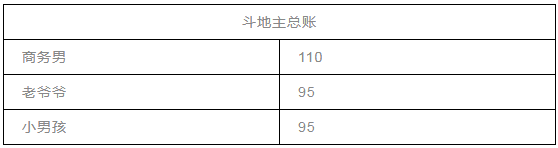 例如商务男作为地主赢得了第一局比赛, 那接下来的账本就是: