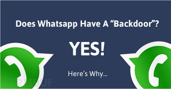 这个后门存在的基础是——信任。毫无疑问的是,绝大多数加密通信服务都会将生成的加密密钥存储在线下,即用户的个人设备上,在用户通信时,仅是通过服务器来传输公有密钥。所以像Whatsapp这样的情况,用户就必须信任服务器不会更改发件人和收件人之间所使用的公有密钥交换机制来执行中间人攻击,去窥视用户之间的私密交流信息。