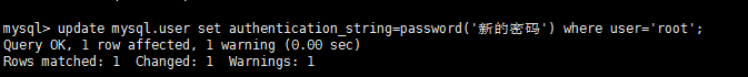 5.执行update mysql.user set authentication_string=password('新的密码') where user='root';修改密码,(update mysql.user set authentication_string=password('新的密码') where user='root' and Host = '127.0.0.1';不行)网上很多方法说执行update user set Password = password('新的密码') where User = 'root';的,我的不管用!mysql5.7数据库下已经没有password这个字段了,password字段改成了authentication_string!!!
