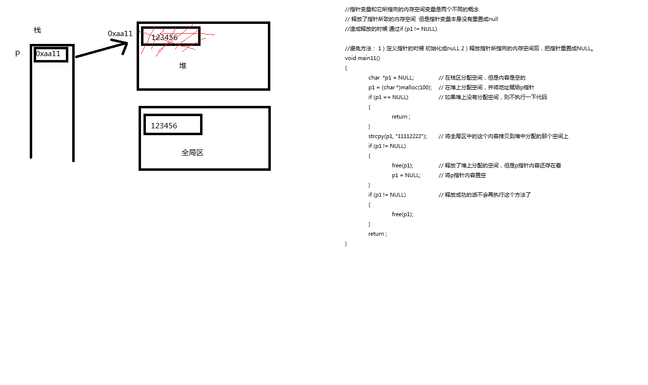 1 ······ 2 3 char *p = NULL; 4 5 ······ 6 7 if ( p != NULL ){ 8 free( p ); 9 p = NULL; 10 } 11 12 ······