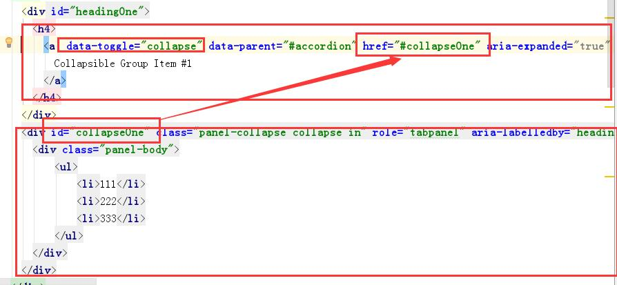 data-toggle="collapse" href="#collapseOne" href指向的是显示内容的id值