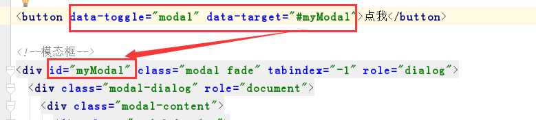 (1)利用data属性:data-toggle="modal" data-target="#myModal" target是弹出的模态框的id值,通常我们把class值赋给一个button