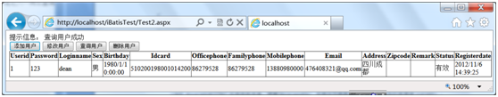 调用ISqlMapper实例的QueryForList方法返回的是一个IList泛型接口,这里指定为iBatisTest.Domain.Sysuser对象。程序运行结果如图3所示。