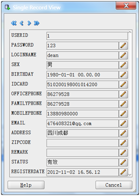 编译程序,点击"添加用户"按钮运行调用程序,系统会成功的向数据库SYSUSER表新增一条记录。查询数据库结果如图2所示:
