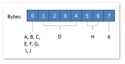 E到G列按道理来说应该存储在D列的后面,但是他们会继续使用第一个 bit byte,直到第一个 bit byte使用完所有的位空间为止