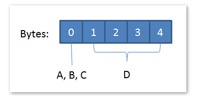 记录的定长部分数据需要占用5个字节,4个字节存储int 列 ,而另一个字节存储A 、B、C这三列位类型的数据,只用了字节里面的3个位