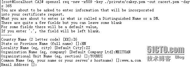 # openssl req -new -x509 -key /etc/pki/CA/private/cakey.pem -out /etc/pki/CA/cacert.pem -days #