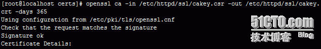 openssl ca -in /etc/httpd/ssl/cakey.csr -out /etc/httpd/ssl/cakey.crt -days 365