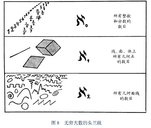 目前我们已经找到有三种无穷大级数aflai0<aflai1<aflai2, ,“各种曲线,包括任何一种奇形怪状的样式在内,它们的样式的数目比所有几何点的数目还要大。因此,应该把它看作是第三级无穷数列”。除此外,没有找到aflai3: