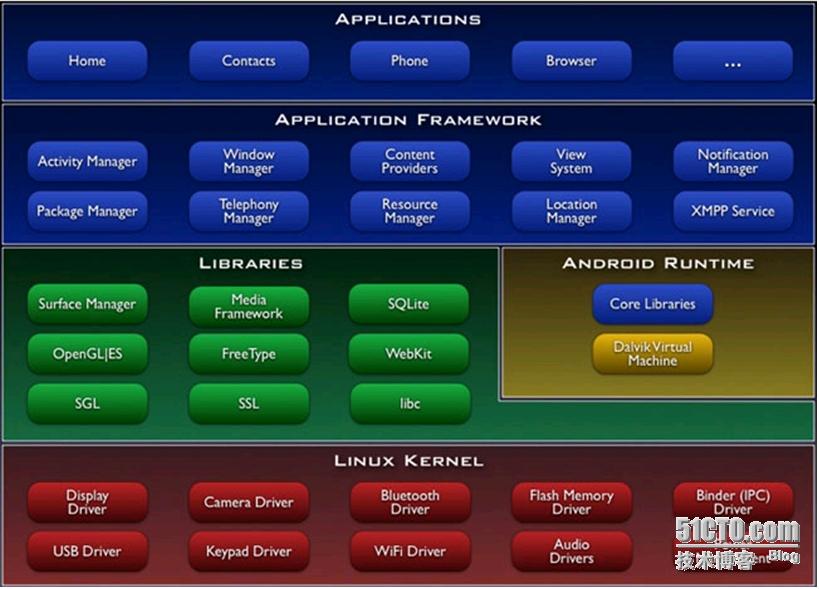 设备驱动程序层(Linux Kernel):该层主要包括:驱动、内存管理、进程管理、网络协议等组件。