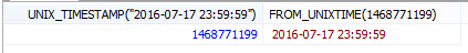 SELECT UNIX_TIMESTAMP("2016-07-17 23:59:59"),FROM_UNIXTIME(1468771199)